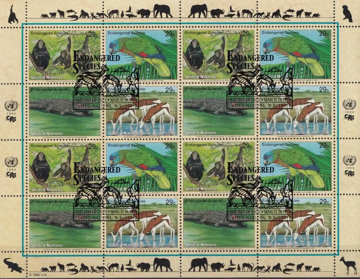 UNO NEW YORK 1994 Mi-Nr. 663/66 Kleinbogen Gefährdete Arten o used - aus Abo