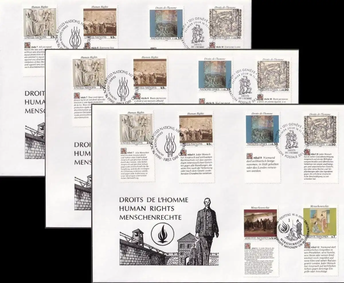UNO NEW YORK - WIEN - GENF 1990 TRIO-FDC Menschenrechte