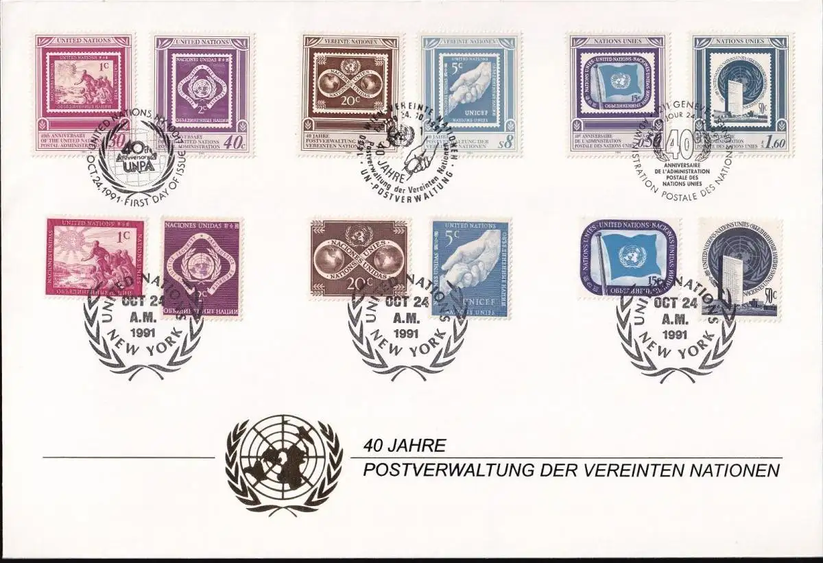 UNO NEW YORK - WIEN - GENF 1991 TRIO-FDC 40 Jahre Postverwaltung der UNO