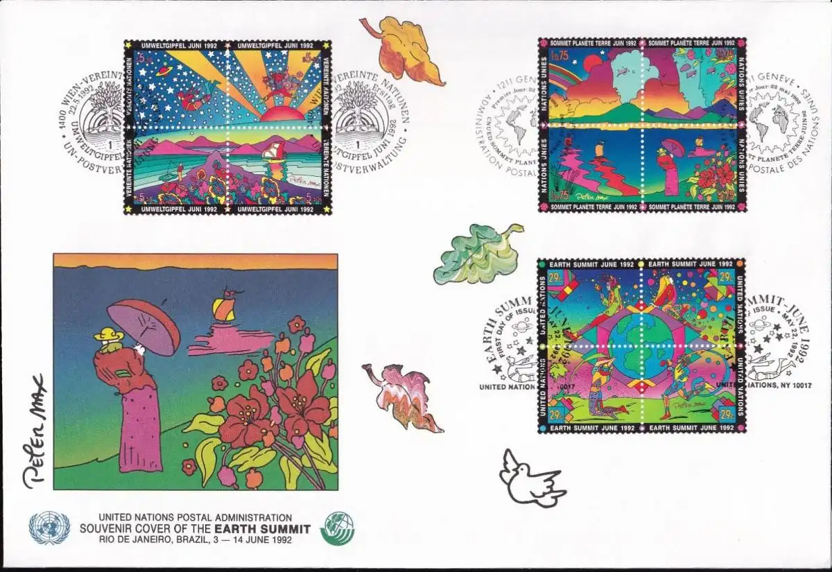UNO NEW YORK - WIEN - GENF 1992 TRIO-FDC Umweltgipfel 1992