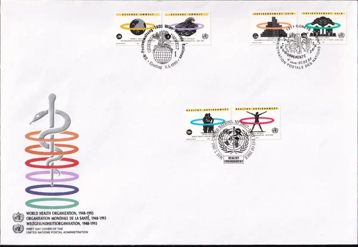 UNO NEW YORK - WIEN - GENF 1993 TRIO-FDC Weltgesundheitsorganisation