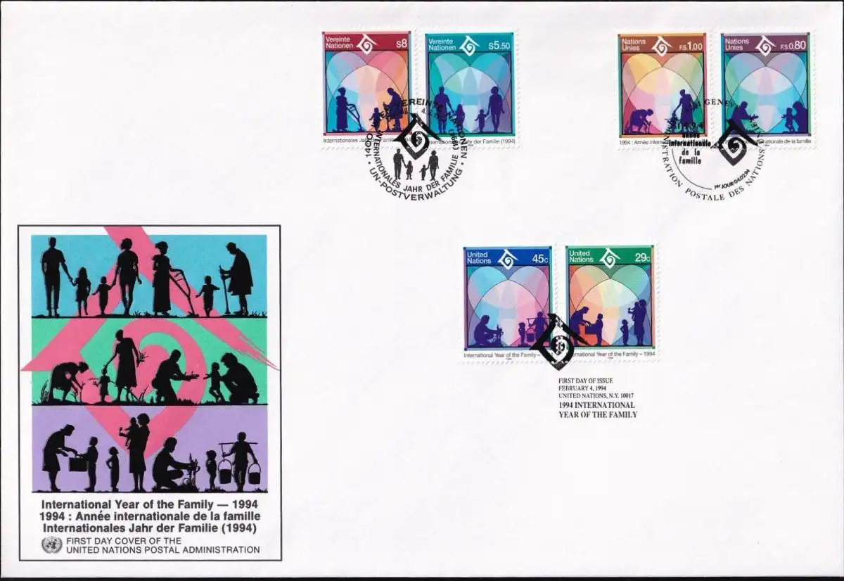 UNO NEW YORK - WIEN - GENF 1994 TRIO-FDC Jahr der Familie