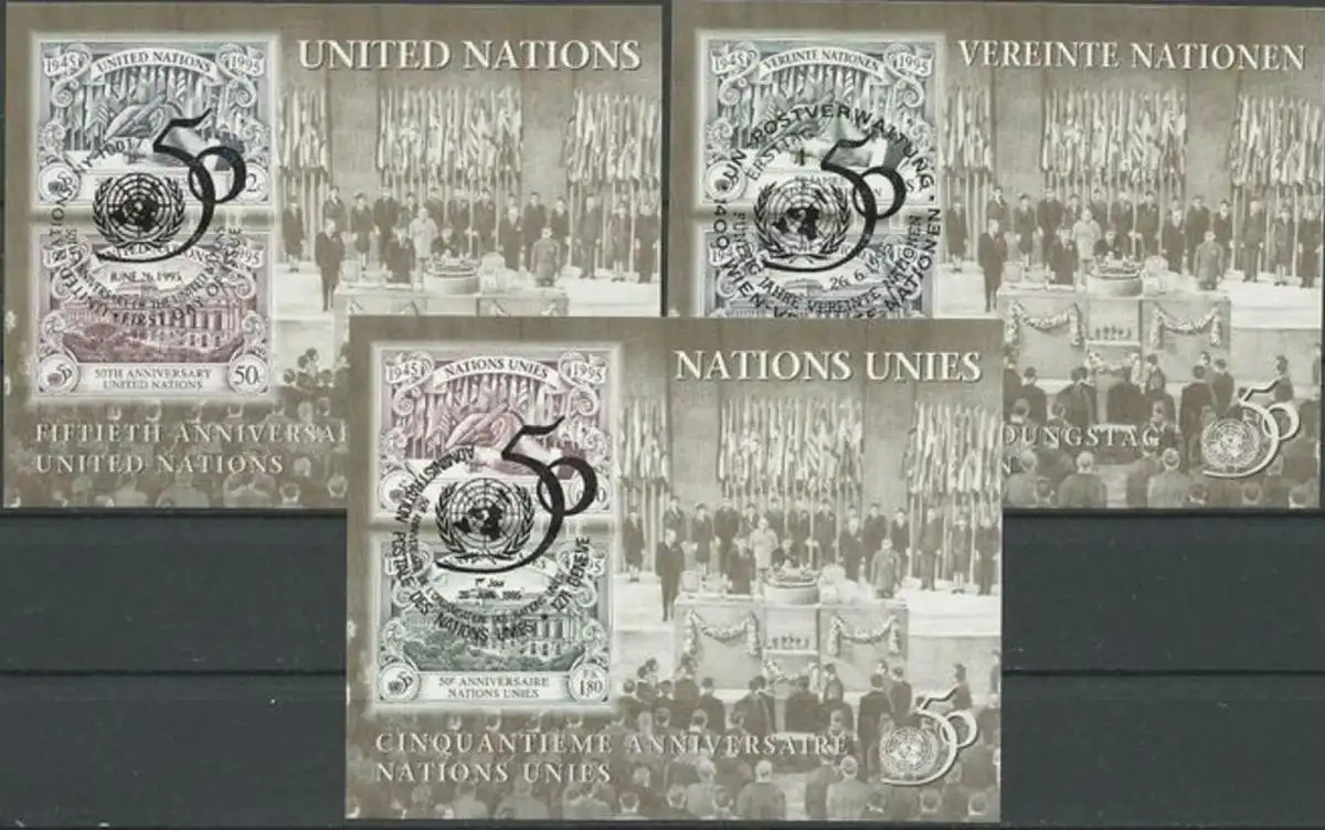 UNO NEW YORK - WIEN - GENF 1995 3 Blöcke o used - aus Abo