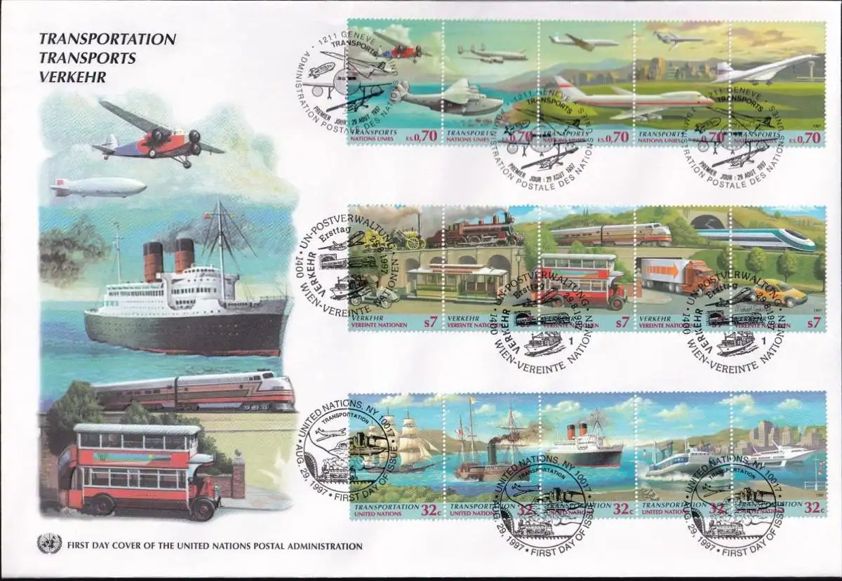 UNO NEW YORK - WIEN - GENF 1997 TRIO-FDC Verkehr