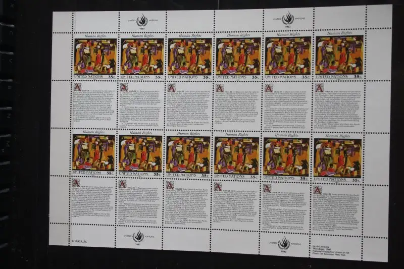 UNO New York Menschenrechte 1993 Kleinbogen; Zusammendruckbogen