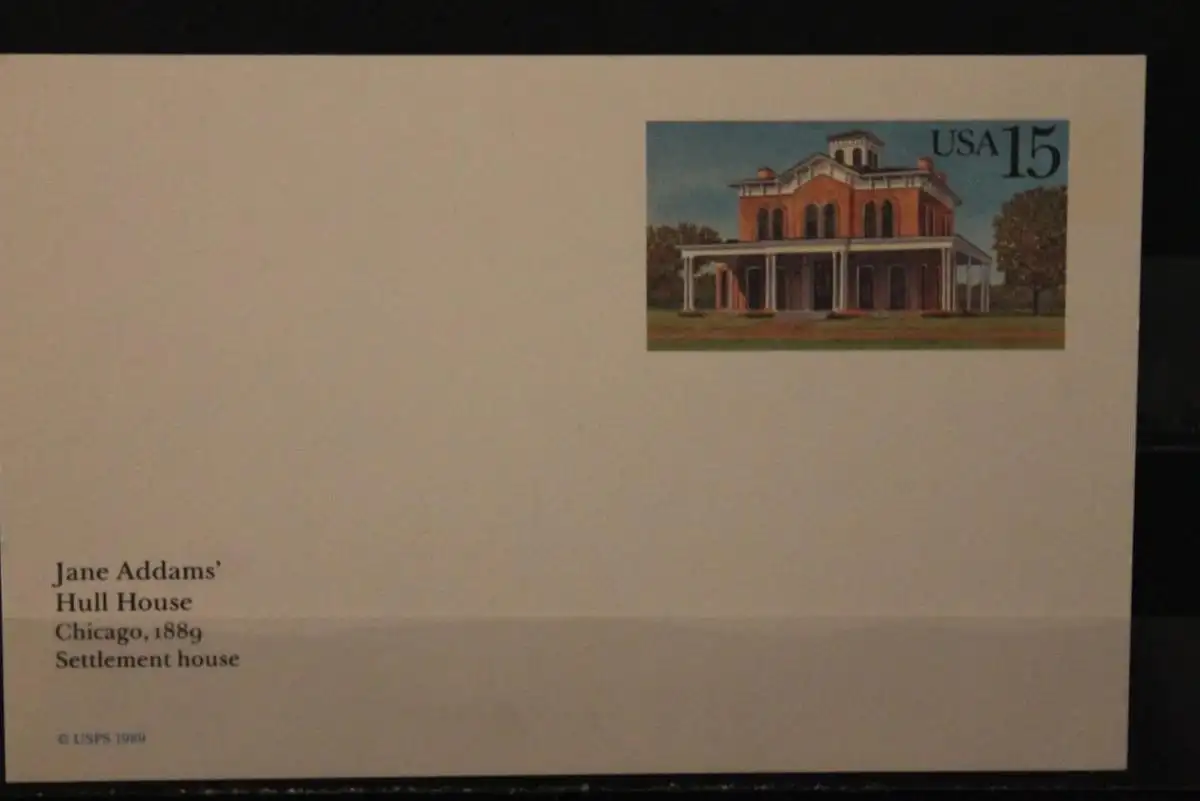 USA 1989, Ganzsache, Jane Addams Hull House, Chicago, ungebraucht