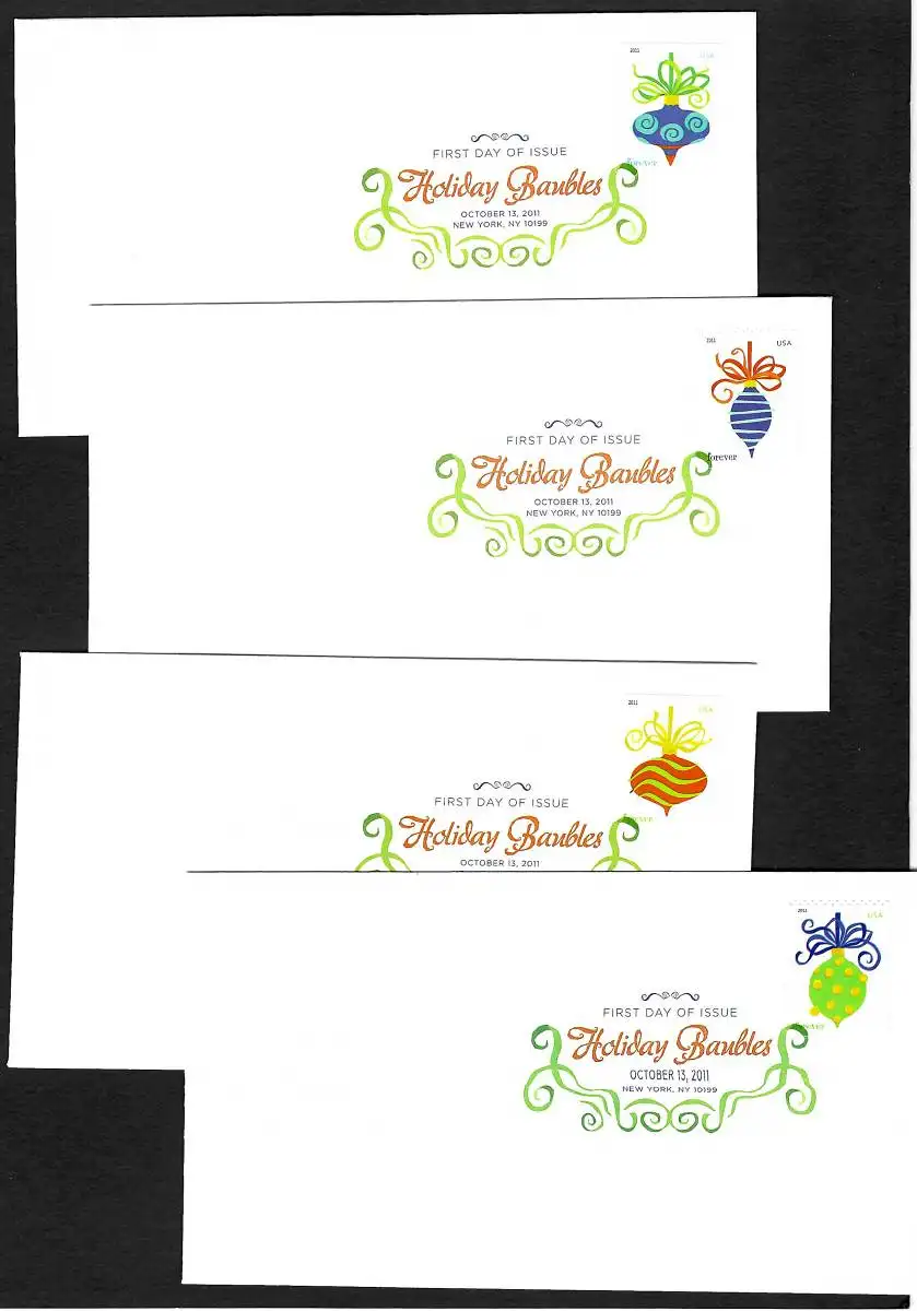 États-Unis: 4x FDC Holiday Baubles, 2011