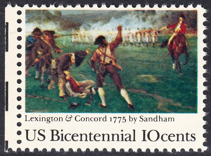 USA Michel 1171 / Scott 1563 postfrisch EINZELMARKE RAND links (a1) - 200 Jahre Unabhängigkeit der Vereinigten Staaten von Amerika (1976): 200. Jahrestag der Schlacht von Lexington-Concord
