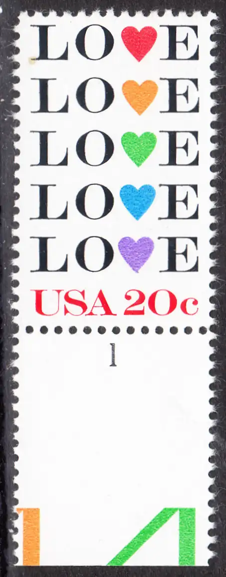 USA Michel 1677 / Scott 2072 postfrisch EINZELMARKE RAND unten & Platte-# 1 - Grußmarke: Love