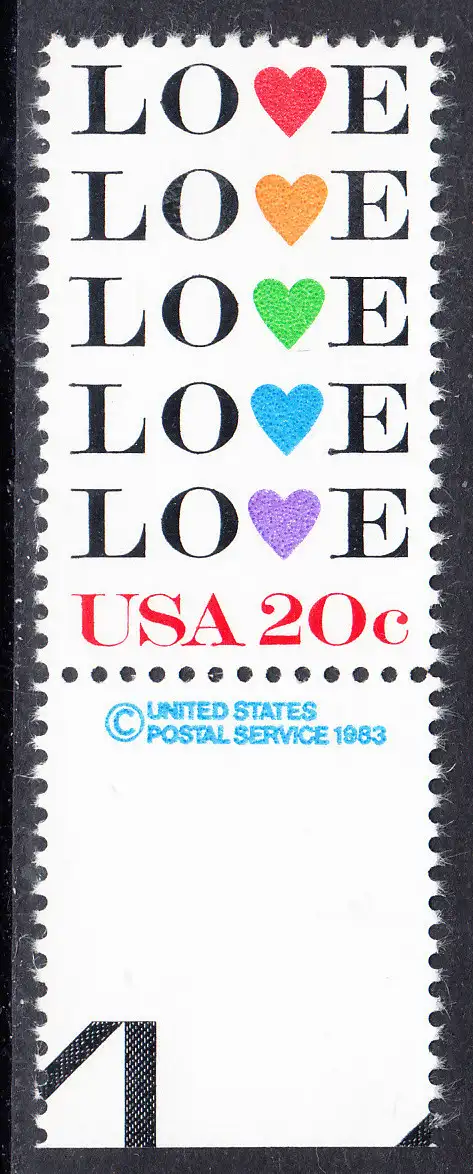 USA Michel 1677 / Scott 2072 postfrisch EINZELMARKE RAND unten & copyright symbol - Grußmarke: Love