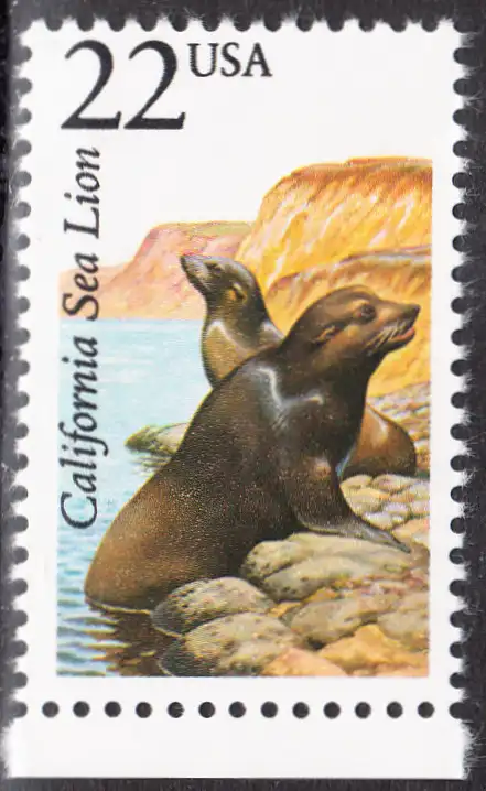 USA Michel 1926 / Scott 2329 postfrisch EINZELMARKE RAND unten (a3) - Nordamerikanische Fauna: Kalifornischer Seelöwe
