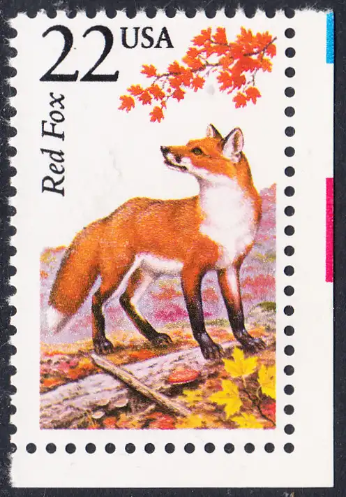 USA Michel 1932 / Scott 2335 postfrisch EINZELMARKE ECKRAND unten rechts (a1) - Nordamerikanische Fauna: Nordamerikanischer Rotfuchs