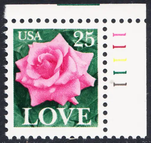 USA Michel 1988 / Scott 2378 postfrisch EINZELMARKE ECKRAND oben rechts m/ Platten-# 11111 - Grußmarke: Rose