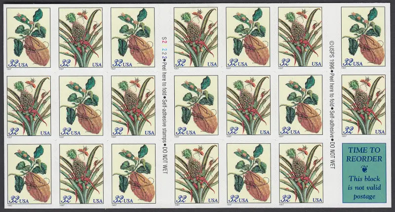 USA Michel 2806-2807 / Scott 3127 postfrisch Folienbogen(20) - Blumen: Zweig eines Zitronenbaums / Blühemde Ananas