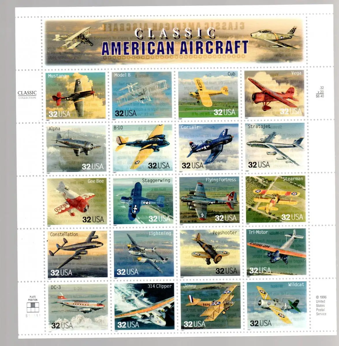 USA ** im Bogen 2833-52 Classic American Aircraft