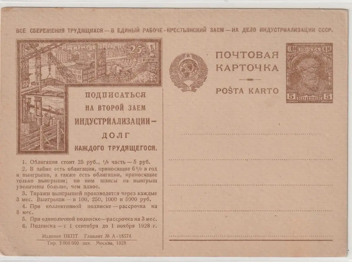 UdSSR: Agitations-Ganzsache 1928 (Industrie-Anleihen)