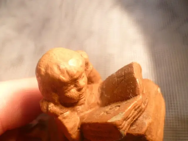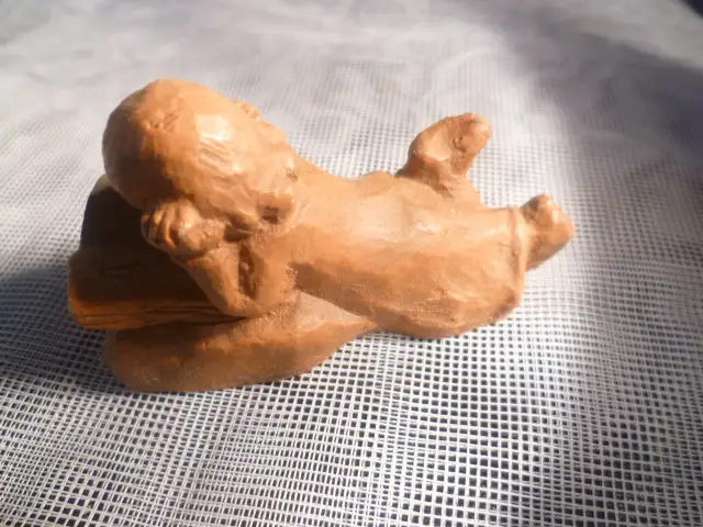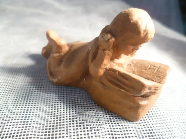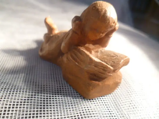 Um 1900 Miniatur Keramik ; ein Mädchen liegend am Lesen , signiert DTS