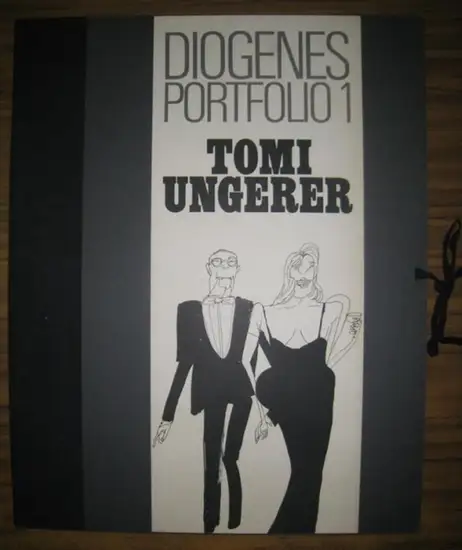 Imperial Folio. Schwarze Original-Halbleinwandmappe ( 63 x 50 cm) mit montierter Vorderdeckelillustration und Bindebändern. Die Mappe leicht berieben und etwas angestaubt, die Deckelillustration an den Rändern minimal gebräunt. Innenliegend 1 Doppelblatt mit Titel, im Druckvermerk signiert und nummeriert sowie Inhaltsverzeichnis. Weiterhin 12 Photolithographien mit teils erotischen, teils bissigen Karikaturen von Tomi Ungerer. Die Lithographien sauber. Gutes Exemplar. Vorliegend Nummer 102 von 500 Exemplaren für den Handel (Gesamtauflage 550). -- Imperial Folio. Black Original Medium Canvas Wallet with mounted front cover illustration and tie straps. Only outside a little bit rubbed and dusty. Inside 1 double sheet with title, signed and numbered and with table of content. Furthermore, 12 photolithographs humorous, bitchy and sexy cartoons of Tomi Ungerer. The lithographs clean. Good copy. In this case number 102 of 500 trading copies (total print run 550)