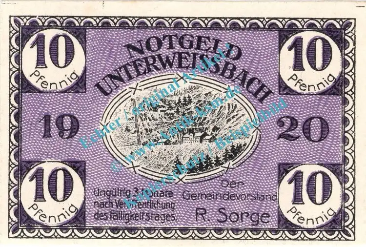 Unterweissbach , Notgeld 10 Pfennig Schein in kfr. Tieste 7550.05.02 , Thüringen 1920 Verkehrsausgabe