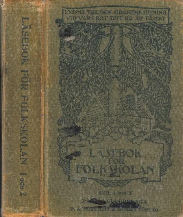 das Buch ist ein Dachbodenfund mit starken Gebrauchsspuren, gebräunt, fleckig, Einbandkanten stark bestoßen, För varje exemplar, omfattande läsebokens första och andra avdelningar, som genom KungL Skolöverstyrelsen eller omedelbart hos Aktiebolaget P. A. Norstedt och Söner rekvireras för folk- eller smäskoleseminarierna (statens eller landstingens) eller av skolrää, folkskolestyreise, styrelse för folkhögskola, högre folkskola, lotsharnskola, skyddshem, dövstumskola eller skola för sinnesslöa harn. Beschreibung vom Antiquariat Ardelt 3k3a Antiquariat Ardelt