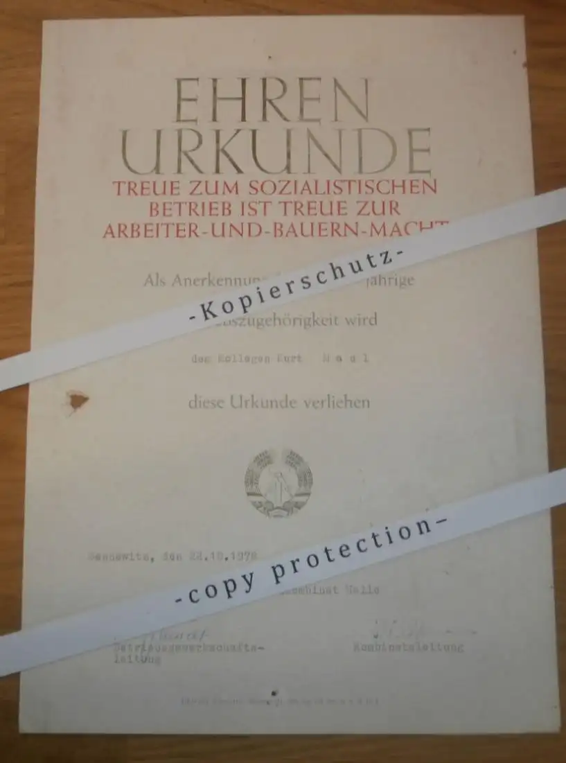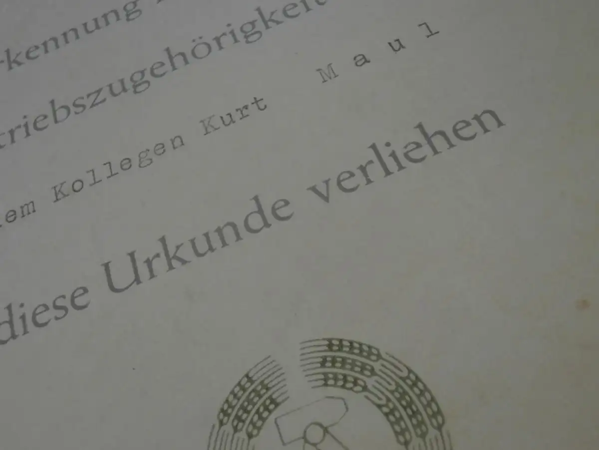 Urkunde v. Rennfahrer Kurt Maul - DDR-Meister im Motorradrennen ,1978 , VEB Natursteinkombinat - Halle Sennewitz , Rennsport , DDR !!AZ-KM