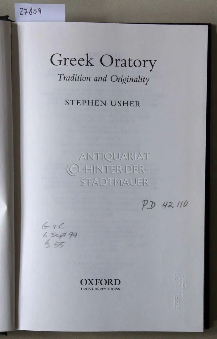 Usher, Stephen: Greek Oratory: Tradition and Originality.