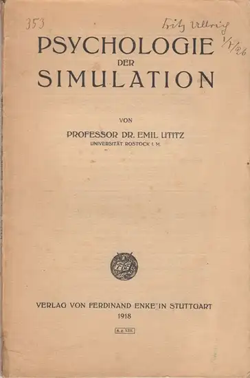 8°. Originalbroschur, angestaubt und randbestoßen, der beschädigte Rückenbezug wurde oben und unten nachgeleimt, Namenszug in alter Tnte auf dem Vorderdeckel (datiert 1926). VIII, 98 (1) Seiten, davon etwa ein Drittel mit Anstreichungen in Blei- und Blaustift. Befriedigender Zustand