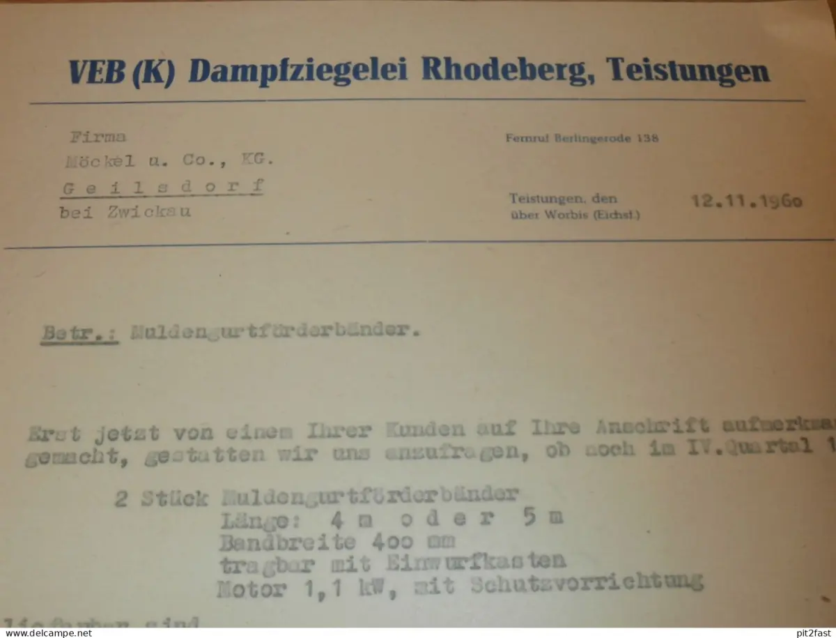 VEB Dampfziegelei Rhodeberg - Teistungen , 1960 , Worbis , altes Dokument , Reklame / Werbung !!