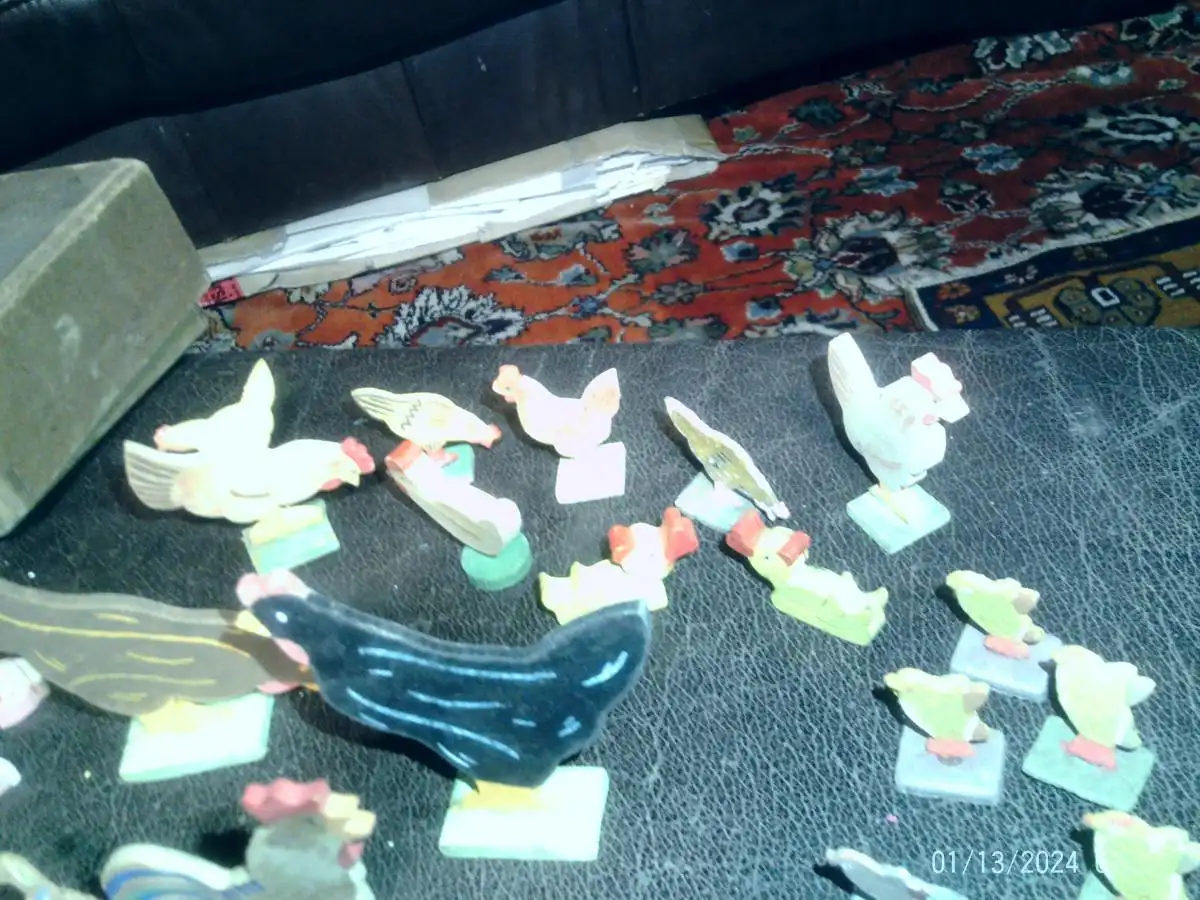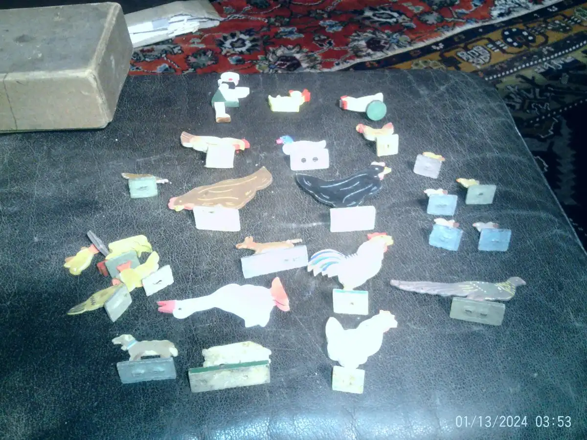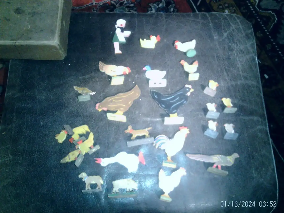 VEB Holz Spielzeuge Set Bauernhof 24 teile um 1940-50 ca 3 -8cm Höhe guter Zustand !