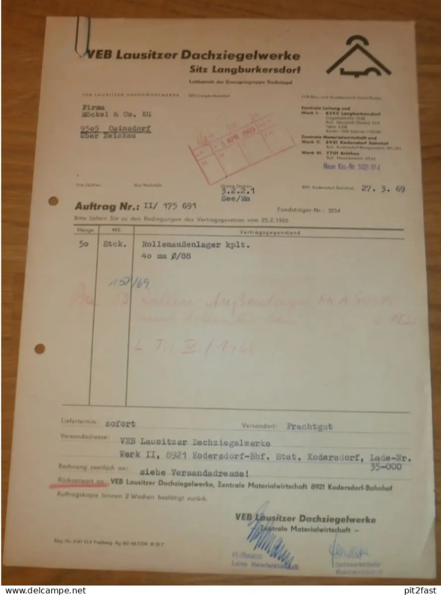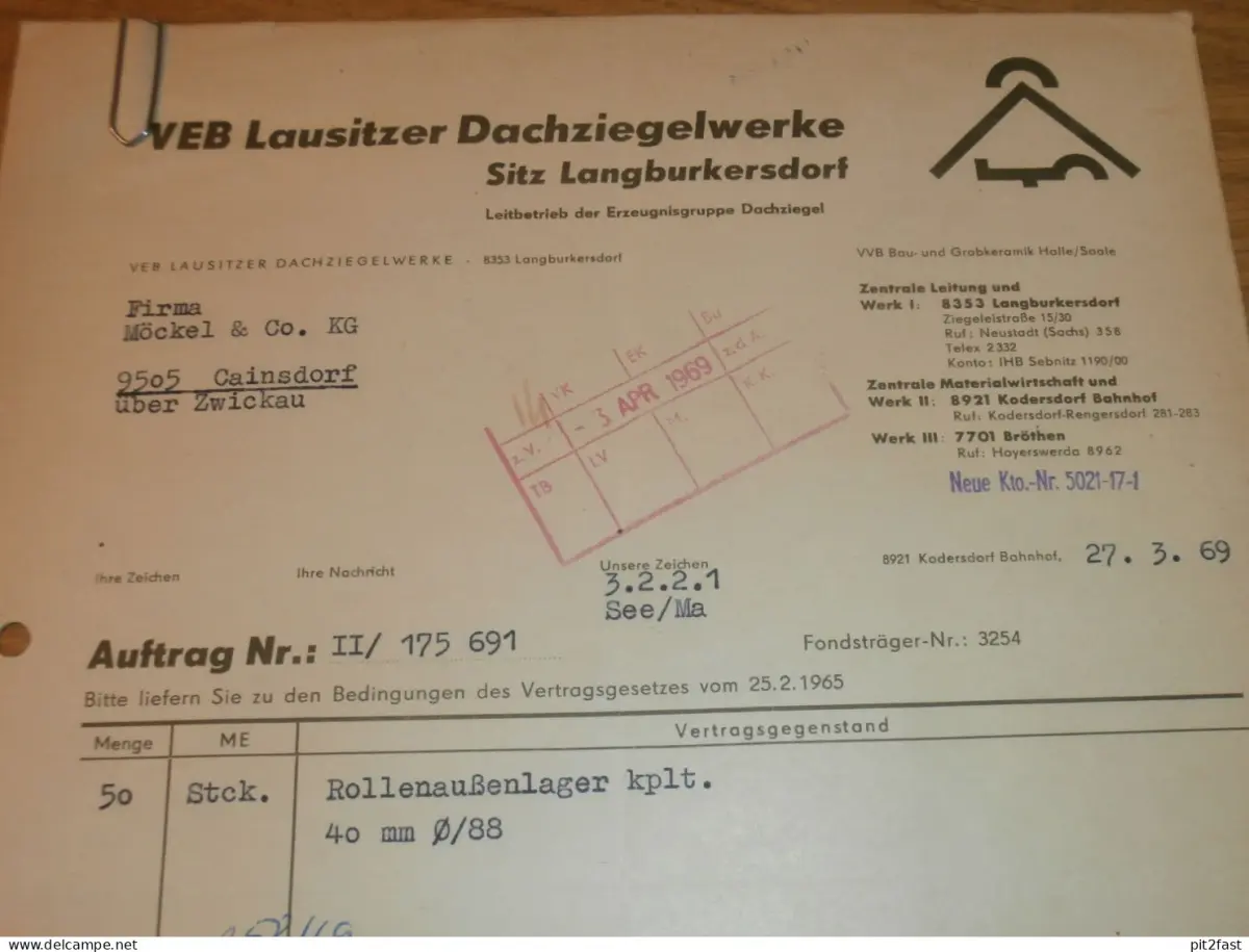 VEB Lausitzer Dachziegelwerke in Langburkersdorf , 1969 , Halle , Hr. Seewald , altes Dokument , Reklame / WerbungAZ-WR/2m