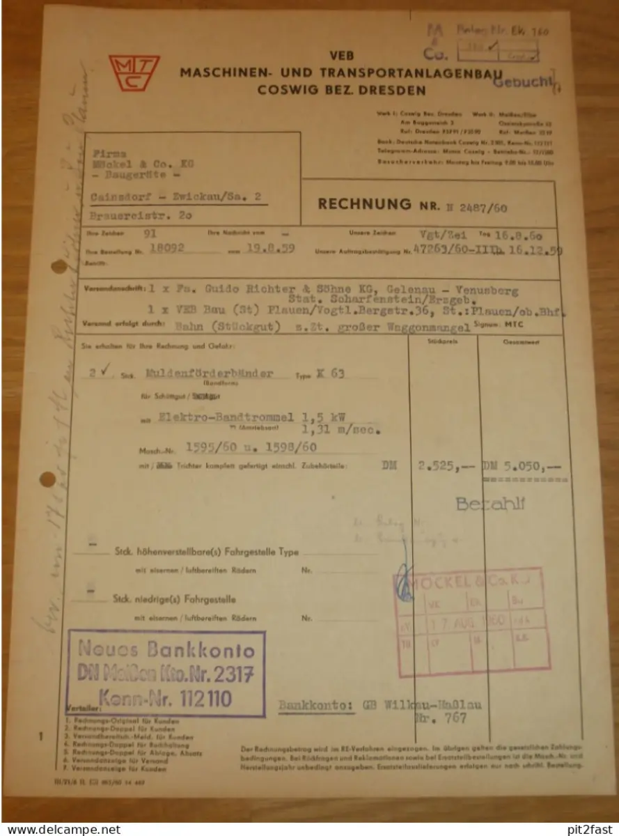 VEB Transportanlagen Coswig b. Dresden , 1960 , altes Dokument , Reklame / WerbungAZ-WR/2m