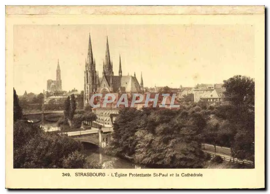 VINTAGE POSTCARD Strasbourg the Protestant Church St Paul and the Cathedral�