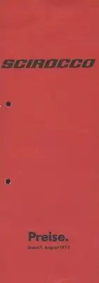 VW Scirocco Preisliste 8.1977