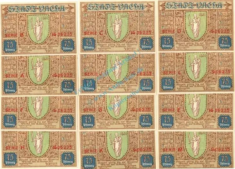 Vacha , Notgeld Set -12 x Nummerngleich- unc-kfr. M-G 1356.1 , Thüringen 1921 Seriennotgeld