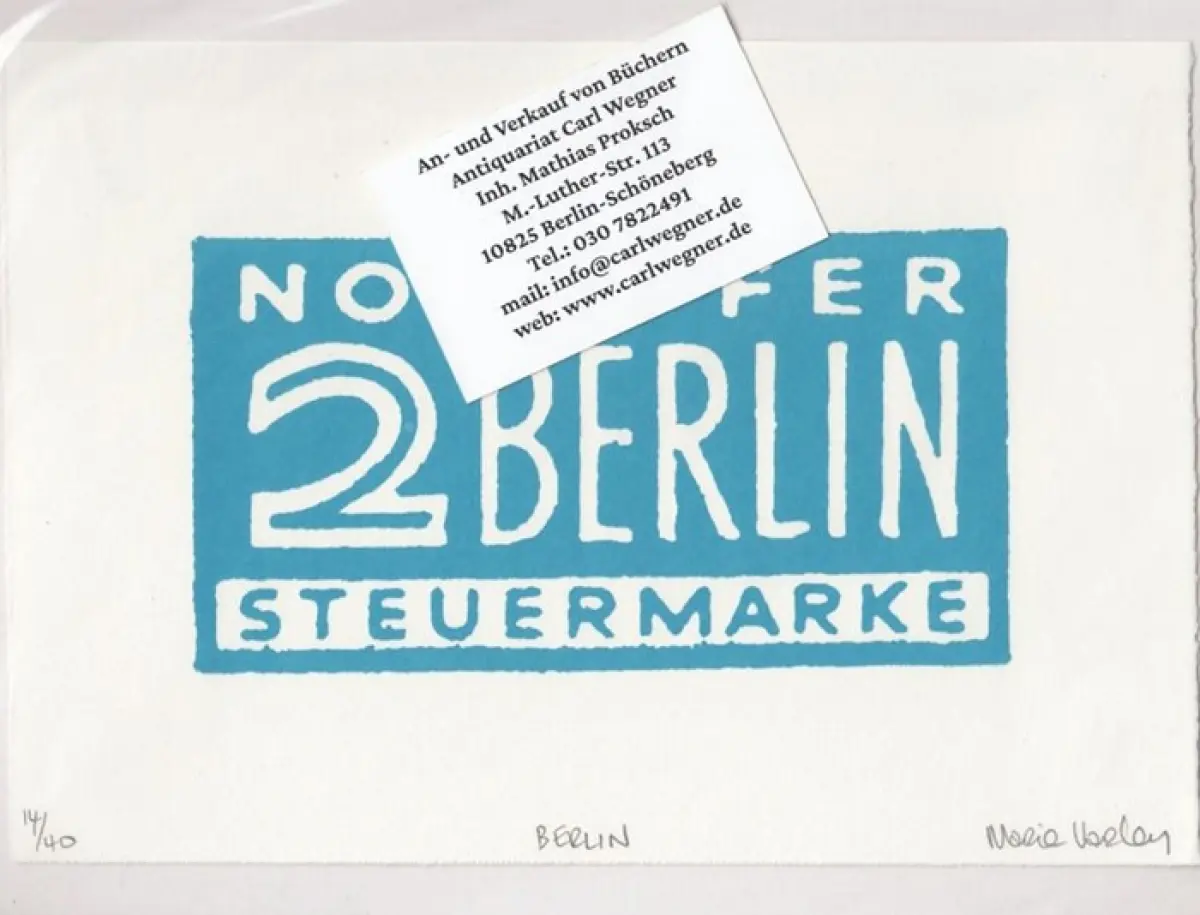 Varley, Marie: Berlin. - Notopfer 2 Berlin Steuermarke. - nummeriertes, signiertes Exemplar ! Hier das Exemplar Nummer 14 (von 40).