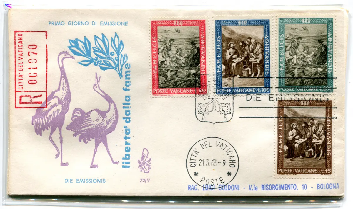 Vatikan FDC Venetia 1963 Hunger gereist Racc. für Italien Vatikan 1963 Hunger auf FDC Umschlag gereist Racc. für Italien mit Annullierung der Ankunft - Abfahrt Cod. 1626/Venetia