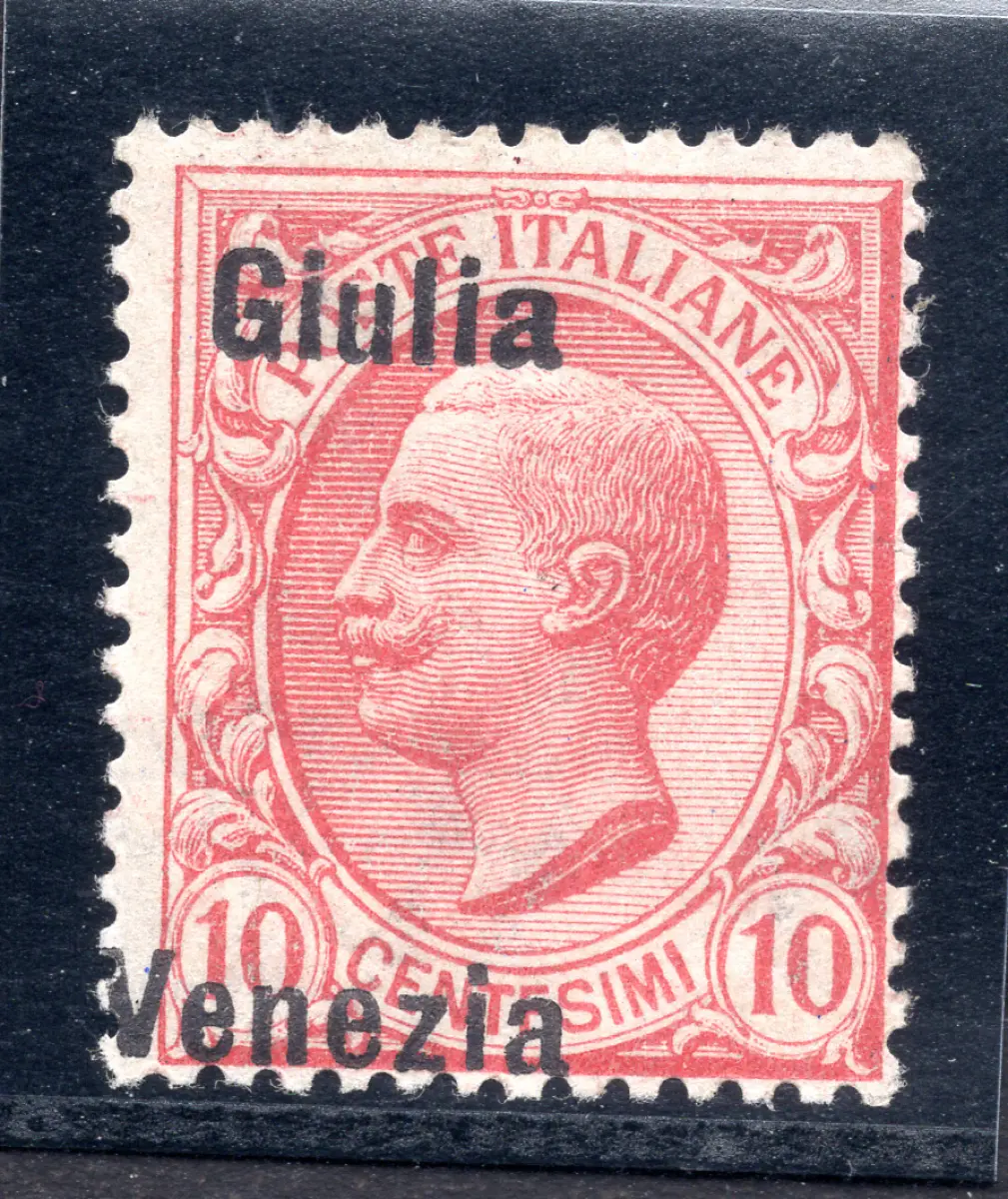 Vollgummi MNH - Venezia Giulia Cent. 10 Löwen Nr. 22d mit stark senkrecht und links verschobenem Aufdruck, neu einwandfrei mit Vollgummi - siehe Hinweis Kat. Sächsischer Katalog Euro240 Cod.2154/WEB