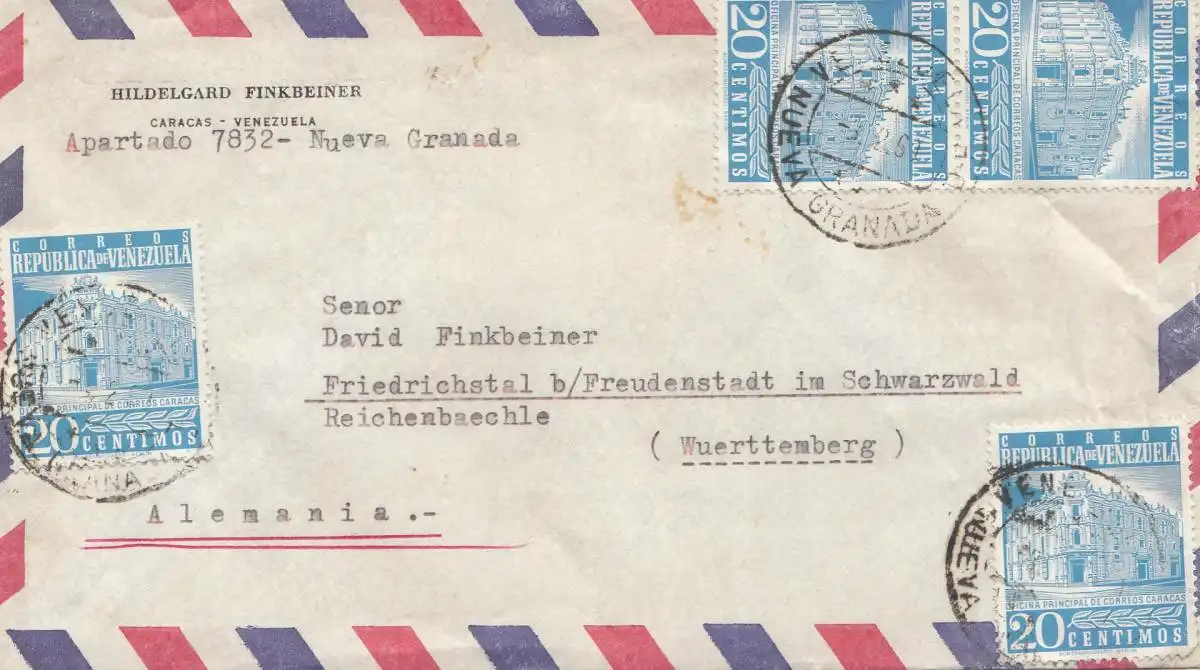 Venezuela 1950 air mail Nueva Granada to Friedrichstal bei Freudenstadt/Germany