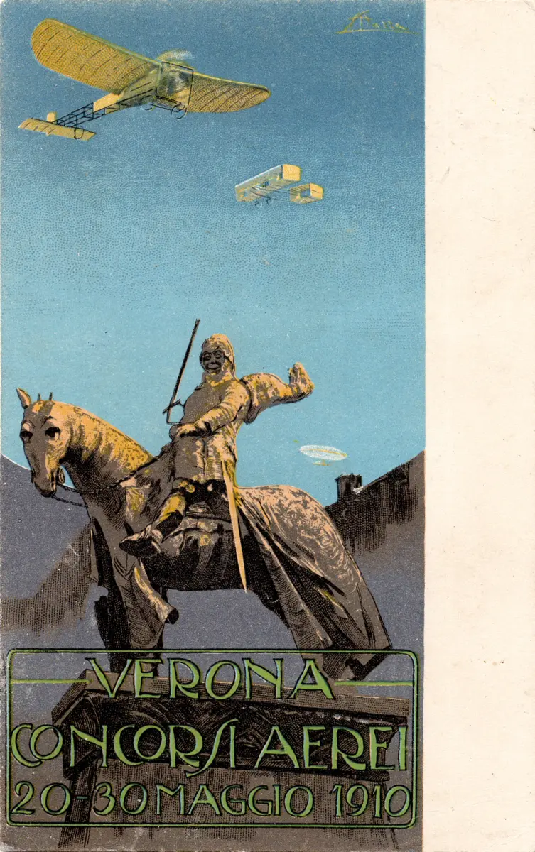 C - Verona Concorsi Aerei Internaz. 1910 - Offizielle Farbkarte gezeichnet von Aldo Mazza (Kat. Longhi Nr. 257) am 1.7.1910 von Genua nach Pescia gereist - sehr guter Erhaltungszustand Cod.118/182