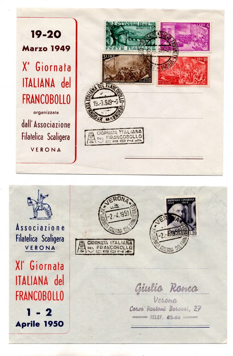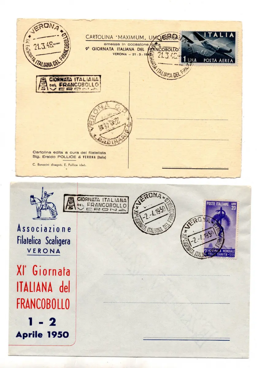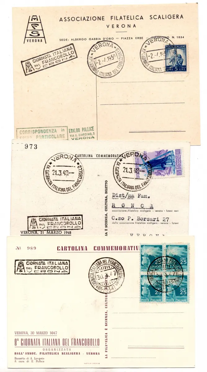- Verona - Manifestazione filat. Scaligera 1947/50 Lot von 3 Umschlägen + 4 Postkarten mit Ann. Veranstaltungsspezialitäten - Schönes Set Nr.651/19