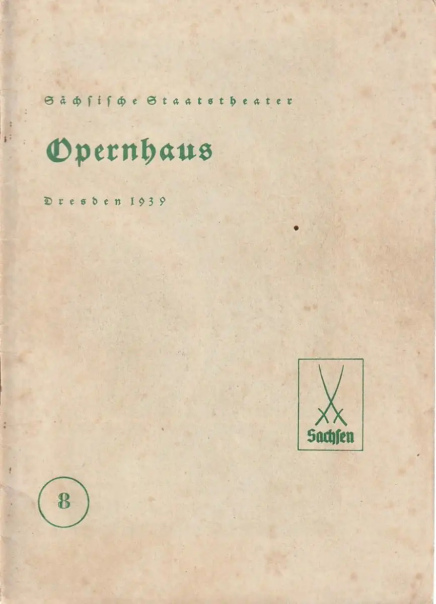 Blätter der Staatsoper Nummer 8 Spielzeit 1938 / 39. Oper in vier Akten. Musikalische Leitung: Willy Czernik. Inszenierung: Hans Strohbach. Mitwirkende: Camilla Kallab, Rudolf Dittrich, Mathieu Ahlersmeyer, Willy Bader, Rudolf Schmalnauer, Elsa Wieber, u.a. - Programmhefte24 - Programmhefte für Theater, Oper & Ballett.