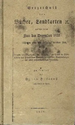 Titel: Verzeichnis der Bücher, Landkarten etc. welche vom Juli bis December 1836