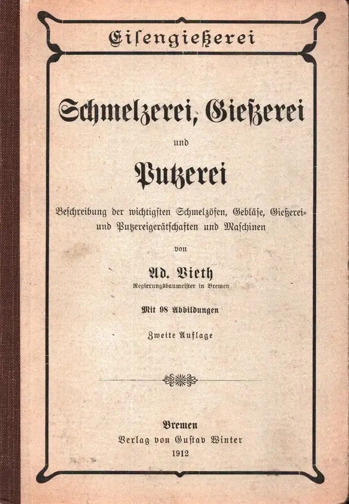 Vieth, Adolf: Schmelzerei, Gießerei und Putzerei. Beschreibung der wichtigsten Schmelzöfen, Gebläse, Gießerei- und Putzereigerätschaften und Maschinen. 2. Aufl.