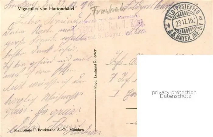 Vigneulles-les-Hattonchatel Vigneulles-les-Hattonchatel postalisch gelaufen 1916 Feldpost - Stempel Erhaltung siehe scans [LiesaD40] Feldpost - Stempel LiesID40
