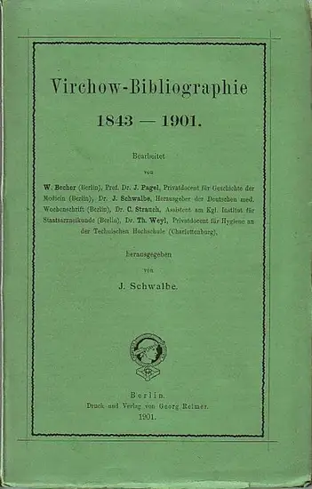 Virchow, Rudolf (1821-1902). - Schwalbe, J. (Herausgeber): Virchow-Bibliographie 1843 - 1901. Bearbeitet von W. Becher, J. Pagel, J. Schwalbe, C. Strauch und Th. Weyl.