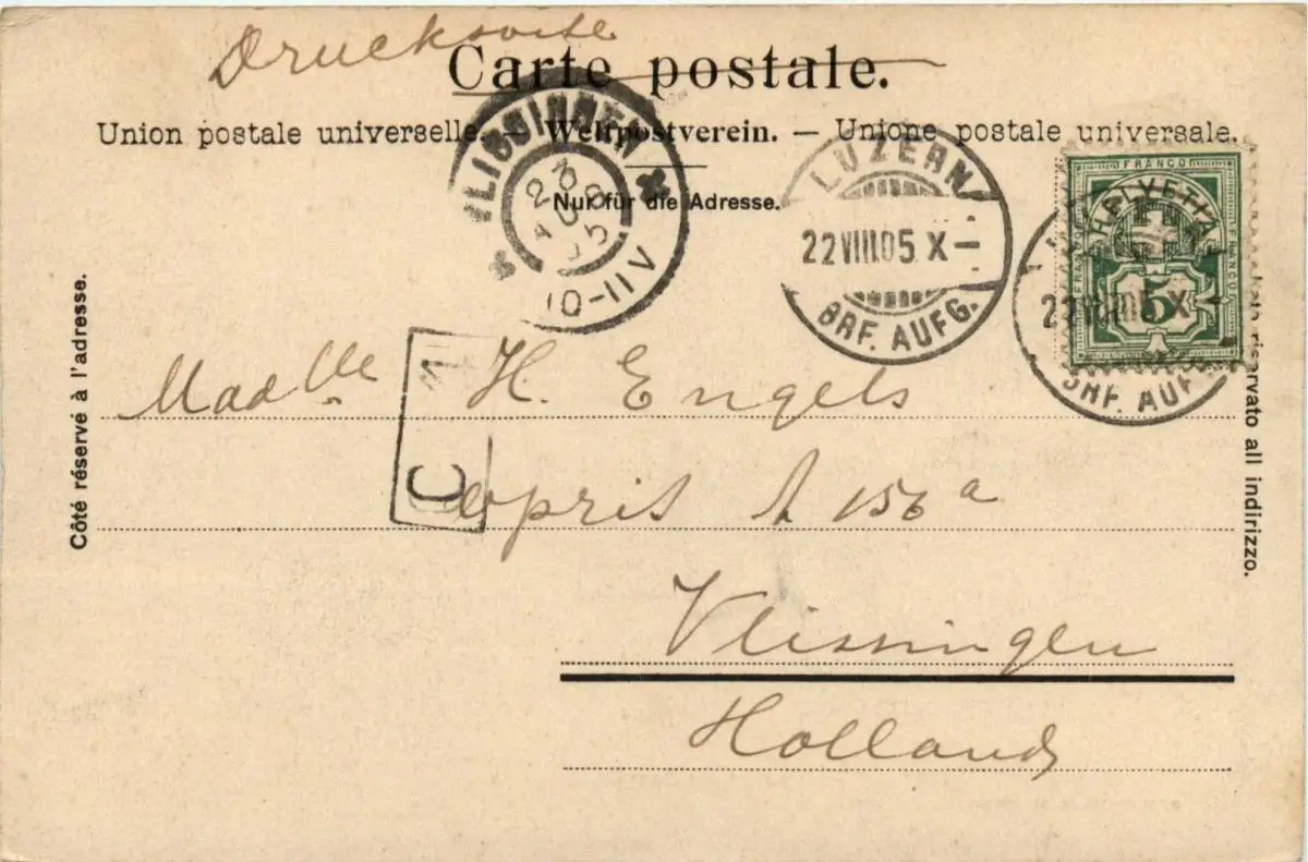 Danke. Alles Bestens. Können Sie mir allenfalls mitteilen, aus welchem Jahr die Postkarte stammt? Besten Dank.