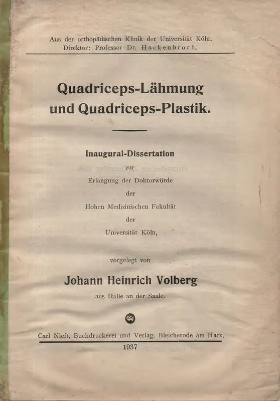 Volberg, Johann Heinrich: Quadriceps-Lähmung und Quadriceps-Plastik : Aus d. orthopäd. Klinik d. Univ. Köln. (Dissertation).