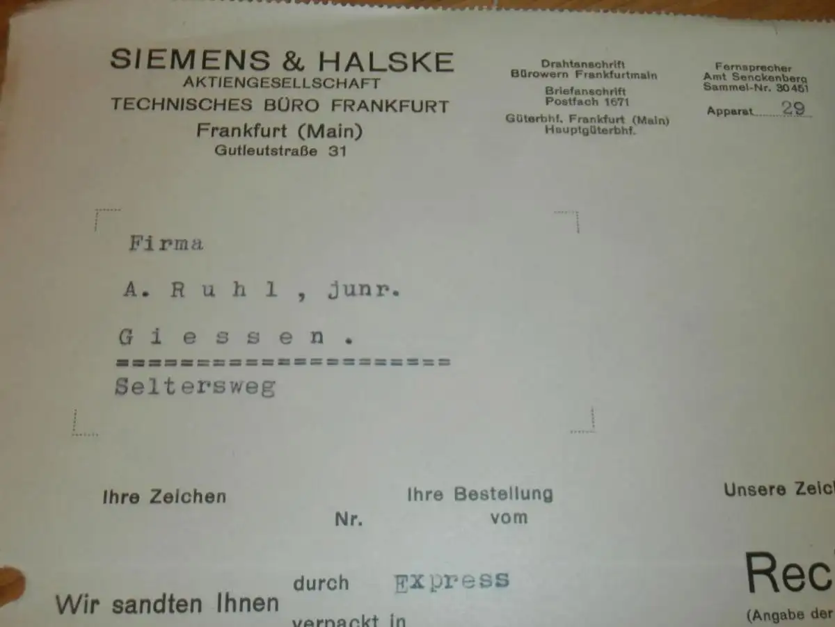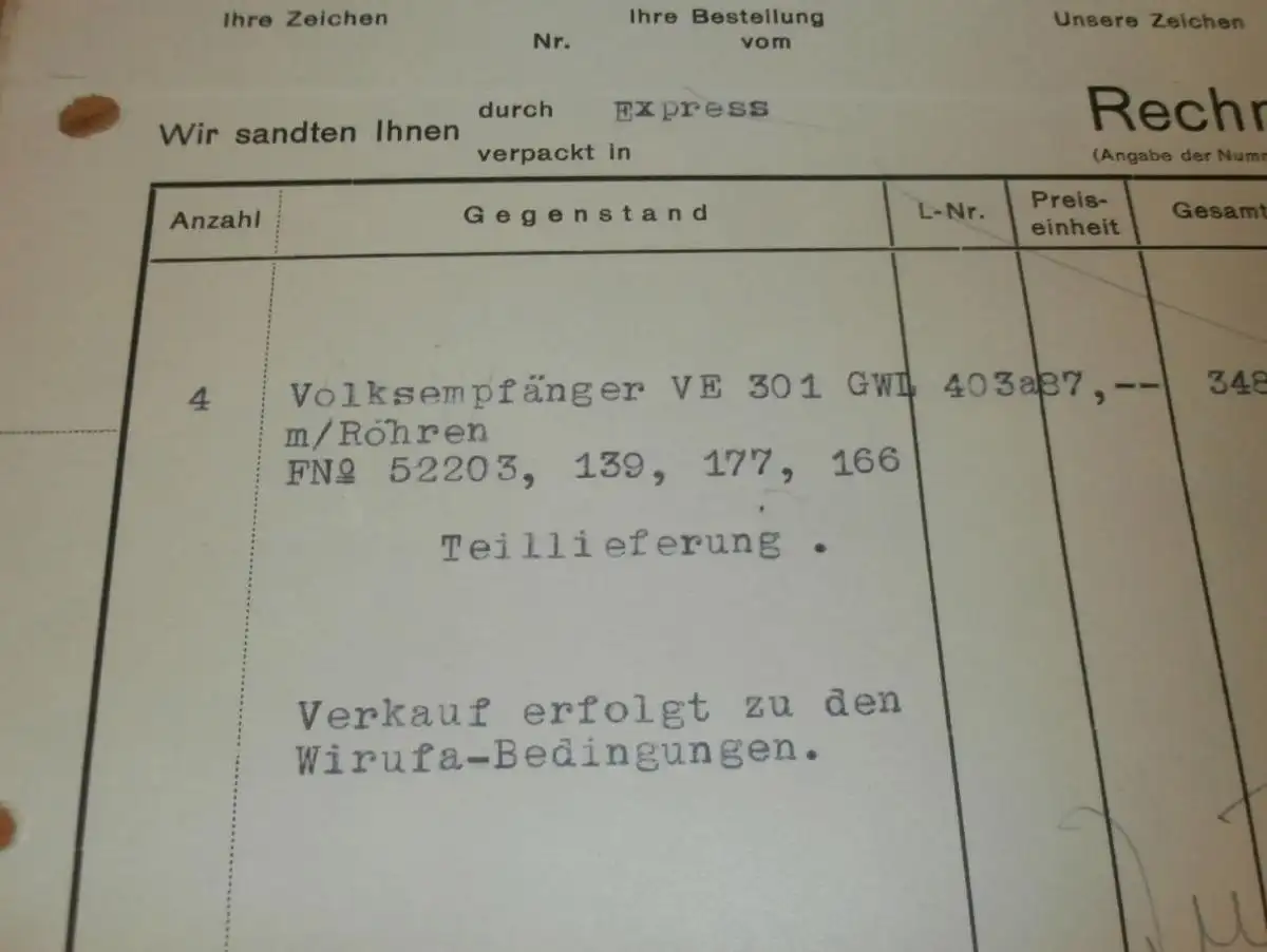 Volksempfänger , 1935 , alte Rechnung von Siemens & Halske AG in Frankfurt a. Main , Radio , altes Dokument !!!AZ9-Z
