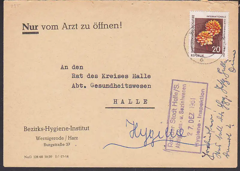 Vordruckbrief Nur vom Arzt zu ”ffnen! Wernigerode (855) mit Vermerk Irrl„ufer