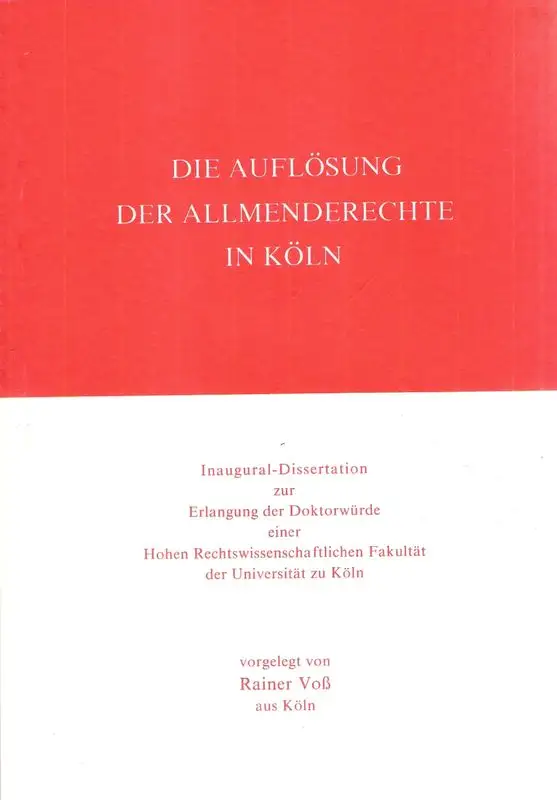 Voss, Rainer: Die Auflösung der Allmenderechte in Köln. (Dissertation).